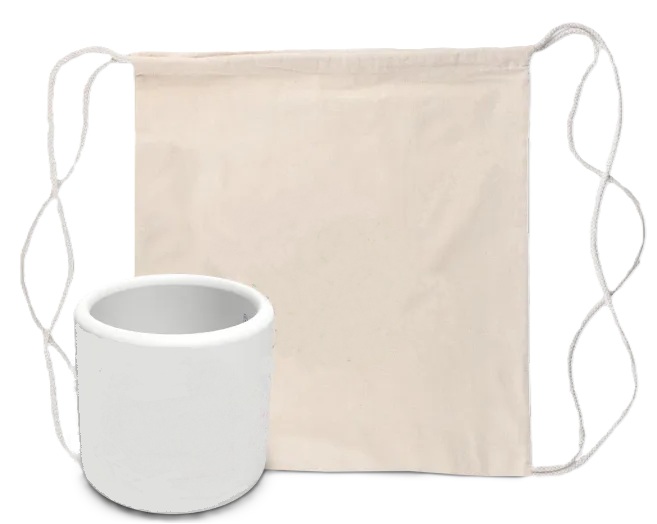 Kubek, woreczek ze sznurkiem