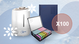 Nawilżacz powietrza, kalendarz dzienny i zestaw karteczek samoprzylepnych